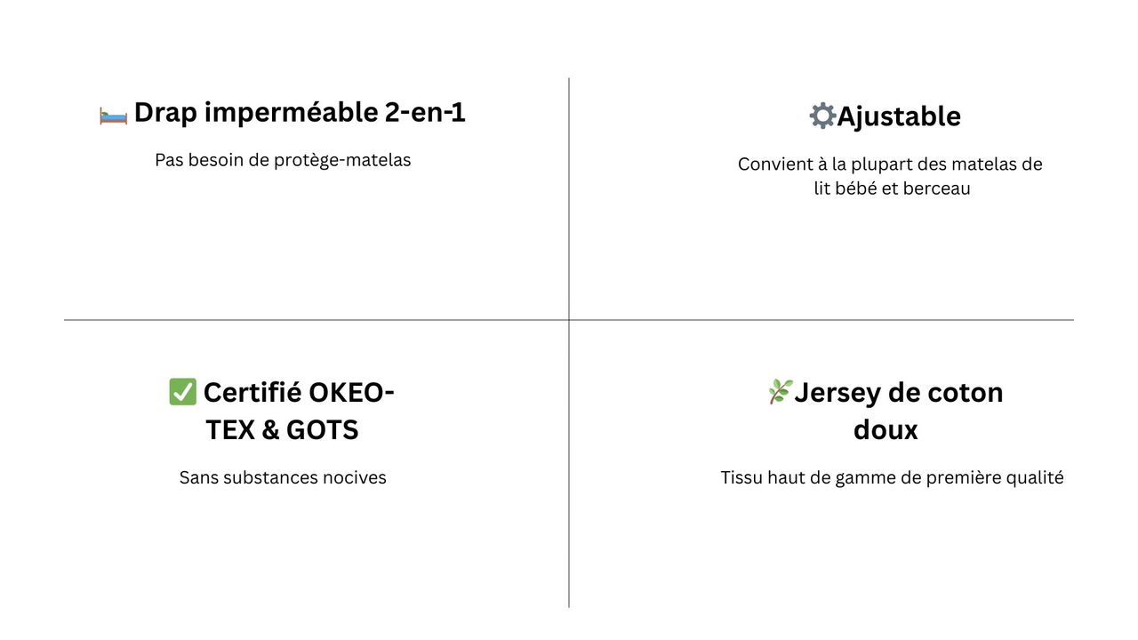 Nous avons conçu ces draps avec soin en associant un doux jersey de coton à une couche imperméable durable. 🌿 Ainsi, votre bébé dort sur une surface à la fois confortable et protectrice.